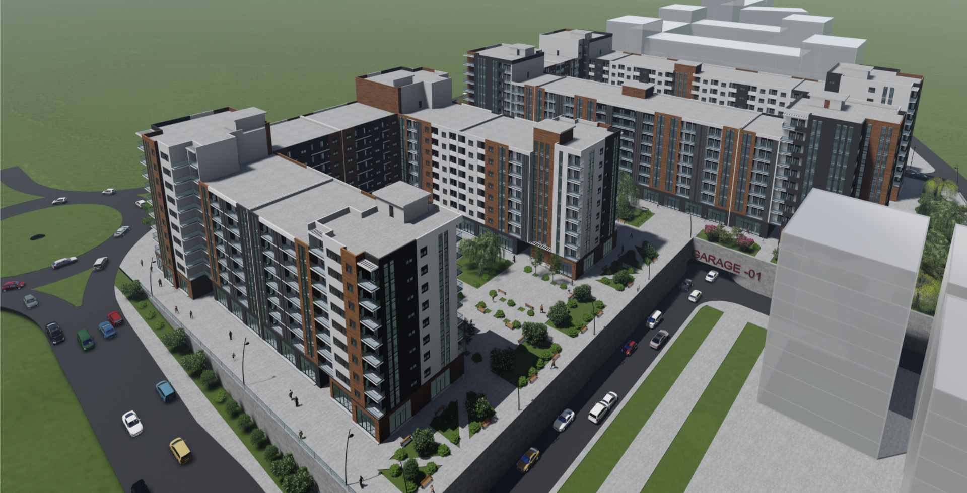 Predviđena je izgradnja 2 nivoa garaže ispod objekata.
